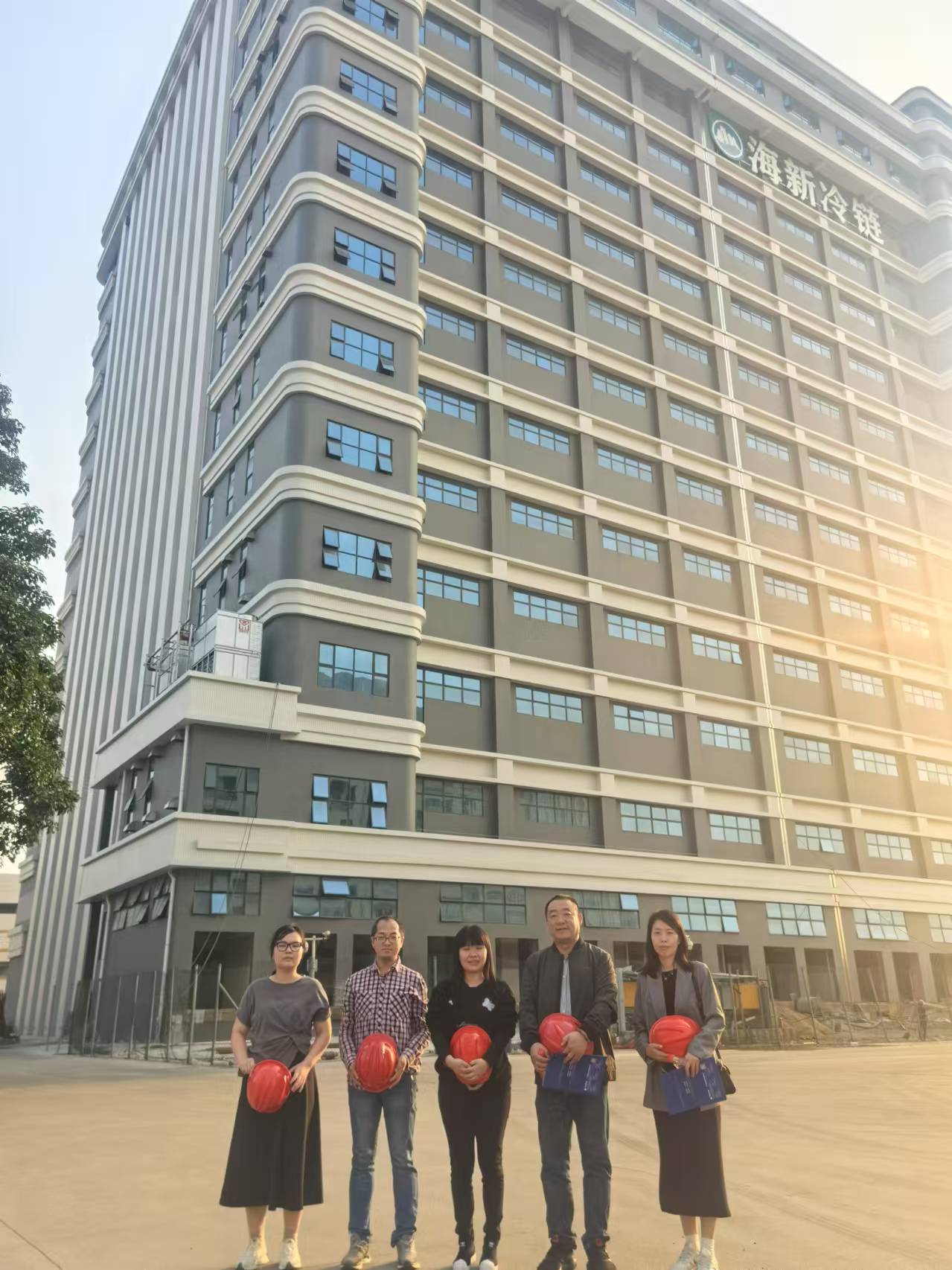 (双方在海新冷链新建冷库前合影)