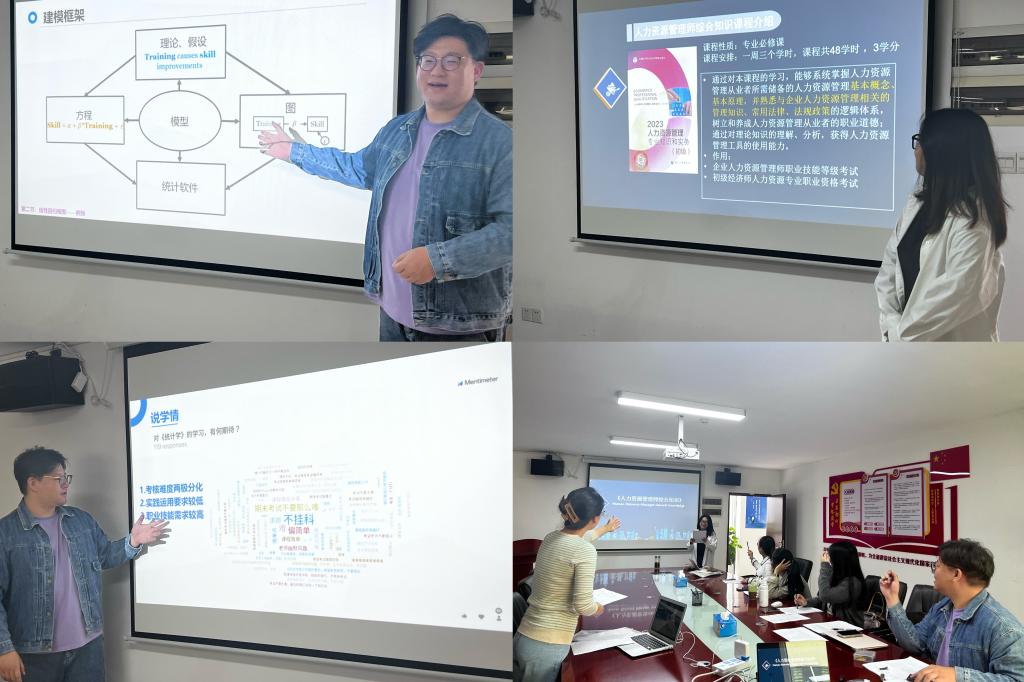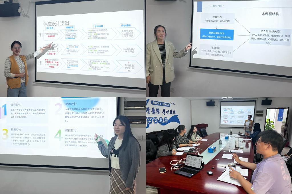 人力资源开发与组织变革课程组迅速行动,把磨课切实执行到位。课程组集结组内13位教师,按“课程分组、以老带新”的原则,进行了为期三周、共分四组的磨课活动。每位老师均进行了至少三次的打磨,虞伍峰老师、王薇老师承担两门课程,分别完成了六次打磨。