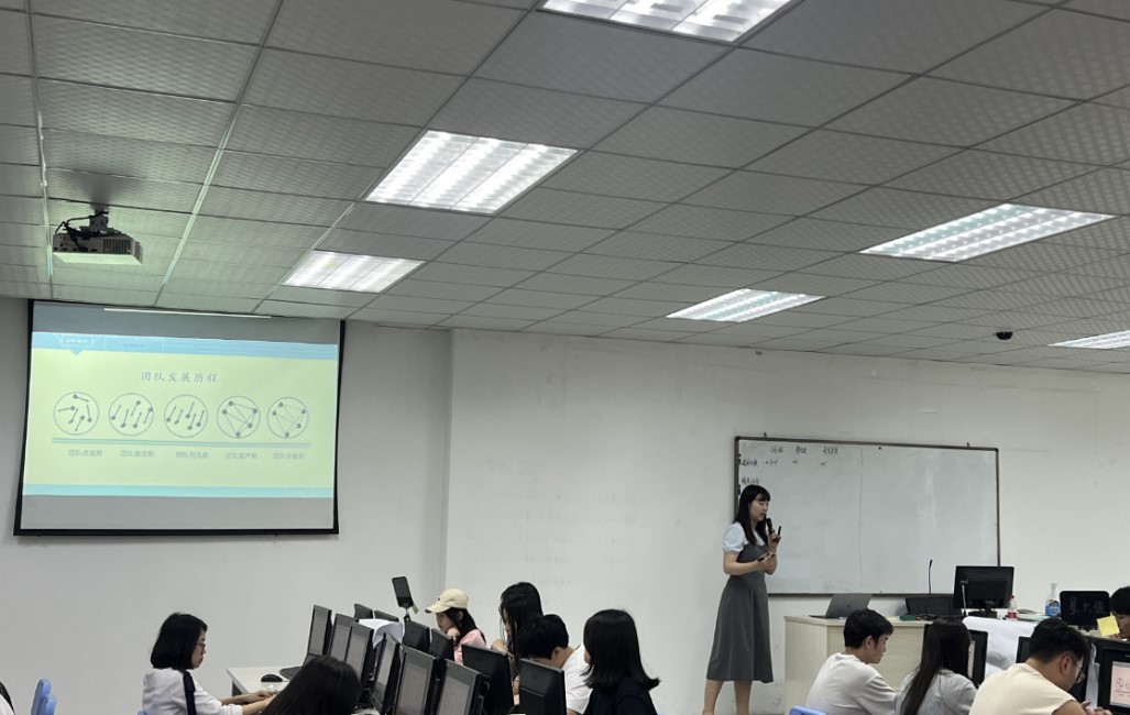 在授课过程中,杨贝琪老师展现出了扎实的教学功底和创新的教学理念。课程围绕“团队培育”展开,杨老师先对团队建设的发展历程进行回顾。包括团队组建期、激荡期、规范期、高产期和修整期等阶段,帮助学生系统梳理知识框架。