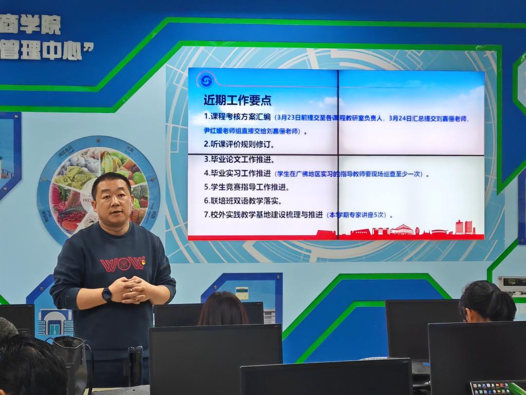 【本网讯】2024-2025学年第二学期物流管理、采购管理教研室工作会议于2025年3月20日14时在第二实验楼A103举行,此次会议由采购管理专业负责人及教研室主任张塽主任主持,一共31名教师出席。