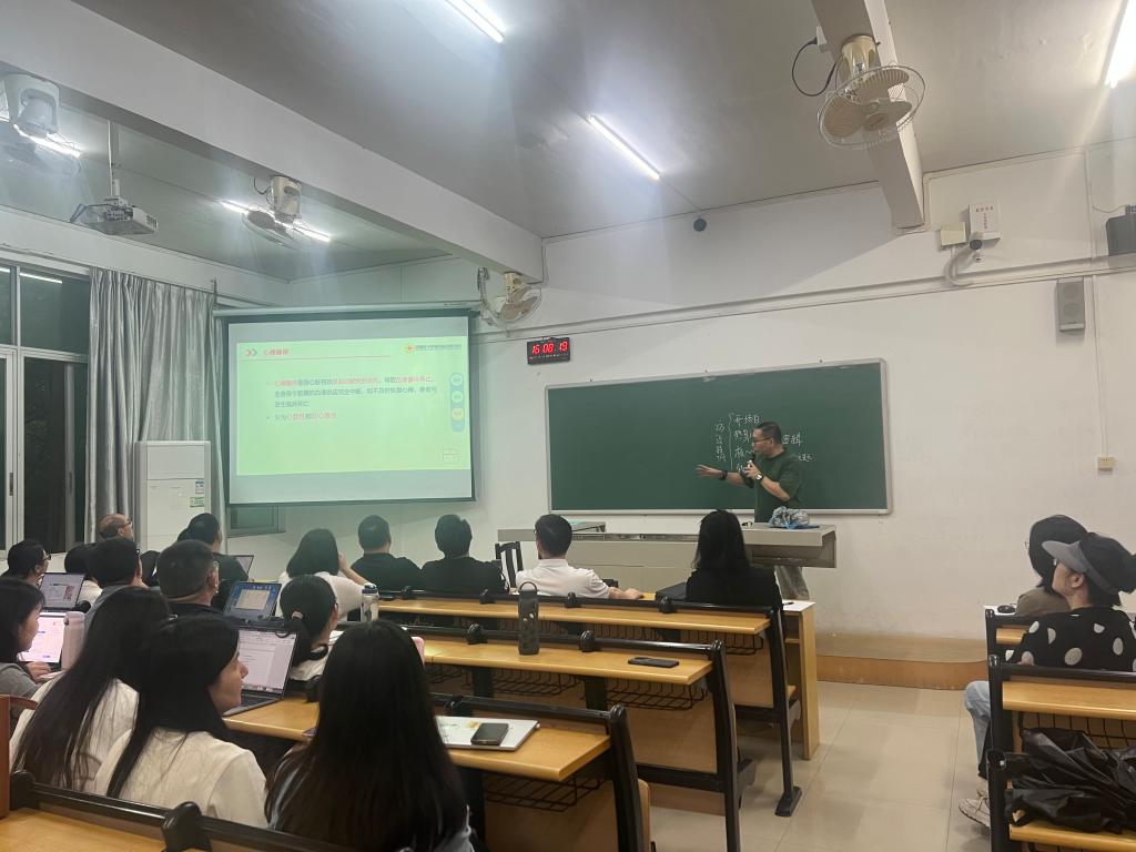 讲座伊始,王保生老师结合真实救援案例,围绕心肺复苏核心理论、AED设备规范使用、溺水专项救援技巧三大重点内容展开专业讲解。在理论教学环节,老师着重强调了心脏骤停救援的“黄金4分钟”原则,详细阐释脑细胞缺氧后的不可逆损伤机制,并结合广州市中心120平均到场时间的实际情况,让老师们深刻认识到第一目击者现场规范施救的重要性。同时,老师精准拆解CPR标准操作参数,明确成人、儿童、婴儿的差异化施救手法,重点讲解成人按压深度5-6厘米、频率100-120次/分钟、按压与人工呼吸30:2的核心要求,确保理论知识讲解细致、要点清晰。