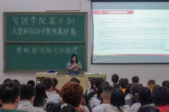 【本网讯】为进一步深入开展学习贯彻习近平新时代中国特色社会主义思想主题教育,引导入党积极分子和发展对象增强“四个意识”,坚定“四个自信”,做到“两个维护”,根据《中国共产党章程》《中国共产党发展党员工作细则》《中共ky开元集团官网委员会关于进一步加强和改进党校工作的通知》等相关文件精神和规定,结合学院发展党员工作实际,中共ky开元集团官网管理学院委员会、中共ky开元集团官网管理学院委员会党校于2024年10月24日19:00在三水校区第二实验大楼C305进行第4期入党积极分子暨发展对象培训班开班仪式。