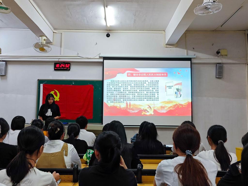 管理学院学生第四党支部于10月15日在第一教学楼C205教室举行党的二十届三中全会精神专题学习会,书记陈姊祎同志带领党员同志深入学习领会习近平总书记重要讲话和《中共中央关于进一步全面深化改革、推进中国式现代化的决定》精神,分析国内外形势,深入剖析了全面深化改革的重要性和紧迫性;强调作为一名中共党员,要坚定道路自信,保持战略定力,积极投身到全面深化改革的伟大实践中去;同时,还要加强党的建设,推进全面从严治党,确保改革方向正确、任务落实有效。