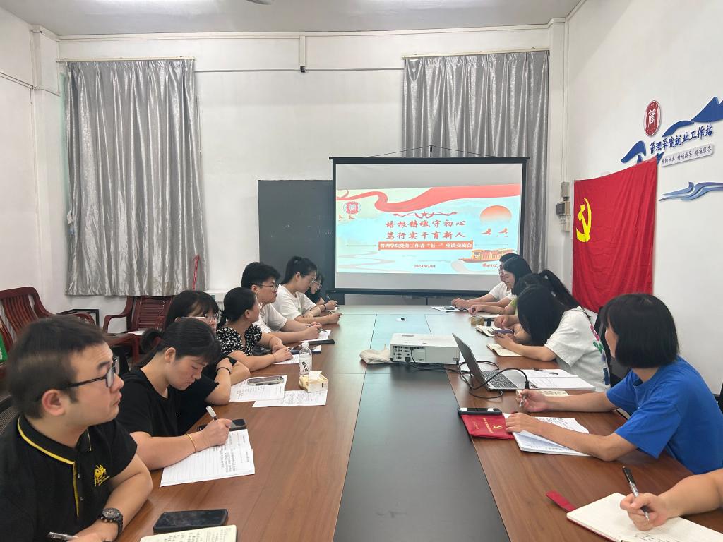 【本网讯】在庆祝中国共产党成立103周年的光辉时刻,为深入贯彻学校党委关于在“七一”前后组织系列活动的部署要求,管理学院党委于2024年7月1日,在管理学院就业指导办公室召开了以“培根铸魂守初心,笃行实干育新人”为主题的管理学院党务工作者“七一”座谈交流会。此次活动旨在弘扬伟大建党精神,进一步巩固和拓展主题教育成果,激励广大师生党员不忘初心、牢记使命,以实际行动践行党的宗旨,筑牢信仰之基,锤炼坚强党性。