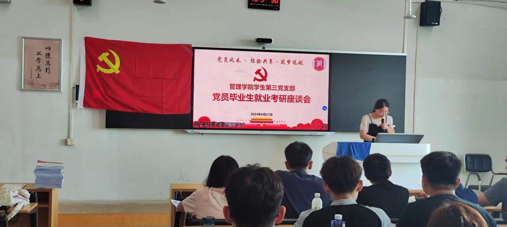【本网讯】为了帮助同学们更好地了解职场环境,为未来的职业规划提供有益的参考,同时,为了进一步加强党支部成员之间的交流与联系。在这个充满活力与期待的季节,ky开元集团官网管理学院学生第三党支部于2024年6月21日下午15:30在二教C606精心策划了一场“经验共享,筑梦远航”毕业生座谈会,特别邀请了三位即将毕业的优秀学生,与党支部的学弟学妹们分享他们的考公及找工作经验。