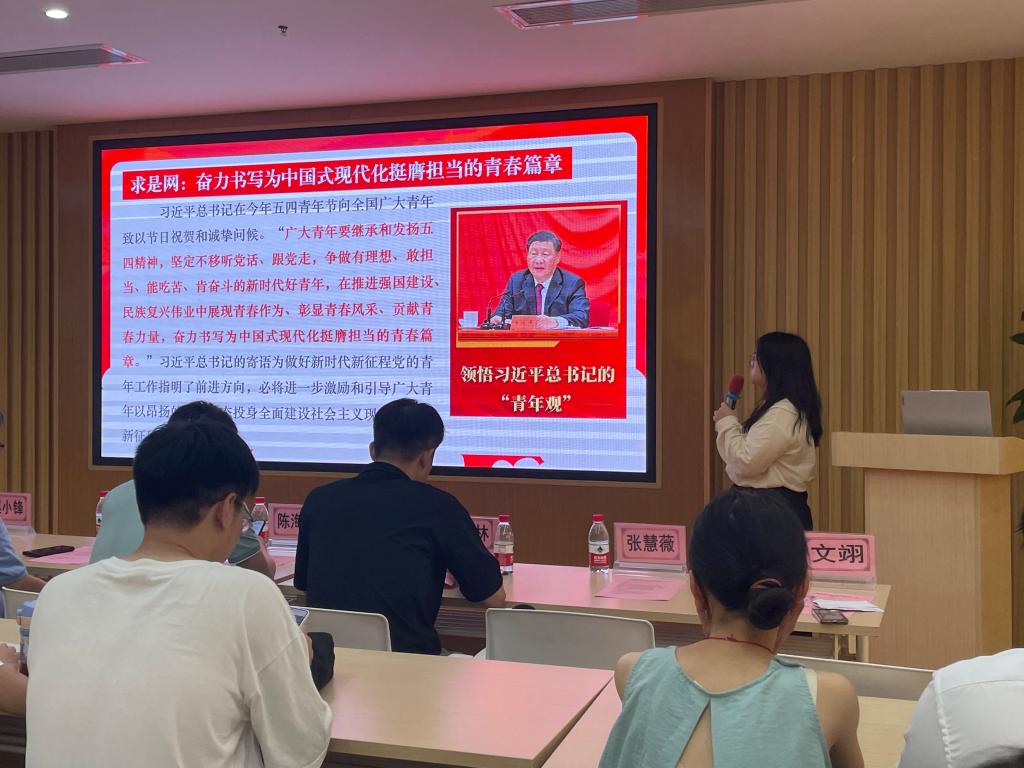 党课在庄严的国歌声中拉开帷幕,全体与会人员起立,奏唱中华人民共和国国歌。管理学院党委宣传委员张慧薇同志领学“深入学习习近平总书记关于争做新时代好青年的重要论述”的议题,讲述习近平总书记对广大青年“争做有理想、敢担当、能吃苦、肯奋斗的新时代好青年” 的殷切期望。