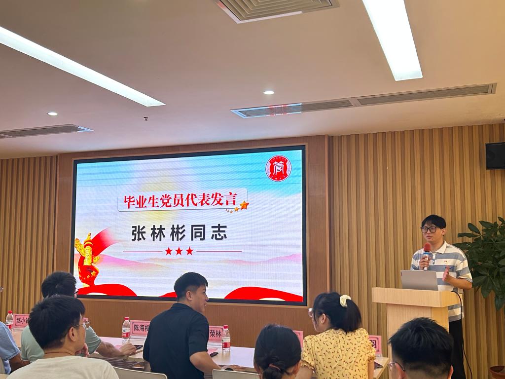 随后,毕业生党员代表张林彬同志从中国共产党人的初心和使命出发结合社会现实,号召毕业生党员们不能忘记中国共产党人的初心,牢记全心全意为人民服务的根本宗旨,充分发挥党员先锋模范作用,勇立时代潮头,做自立、自强、自信的时代弄潮儿,为实现中华民族伟大复兴注入青春能量。