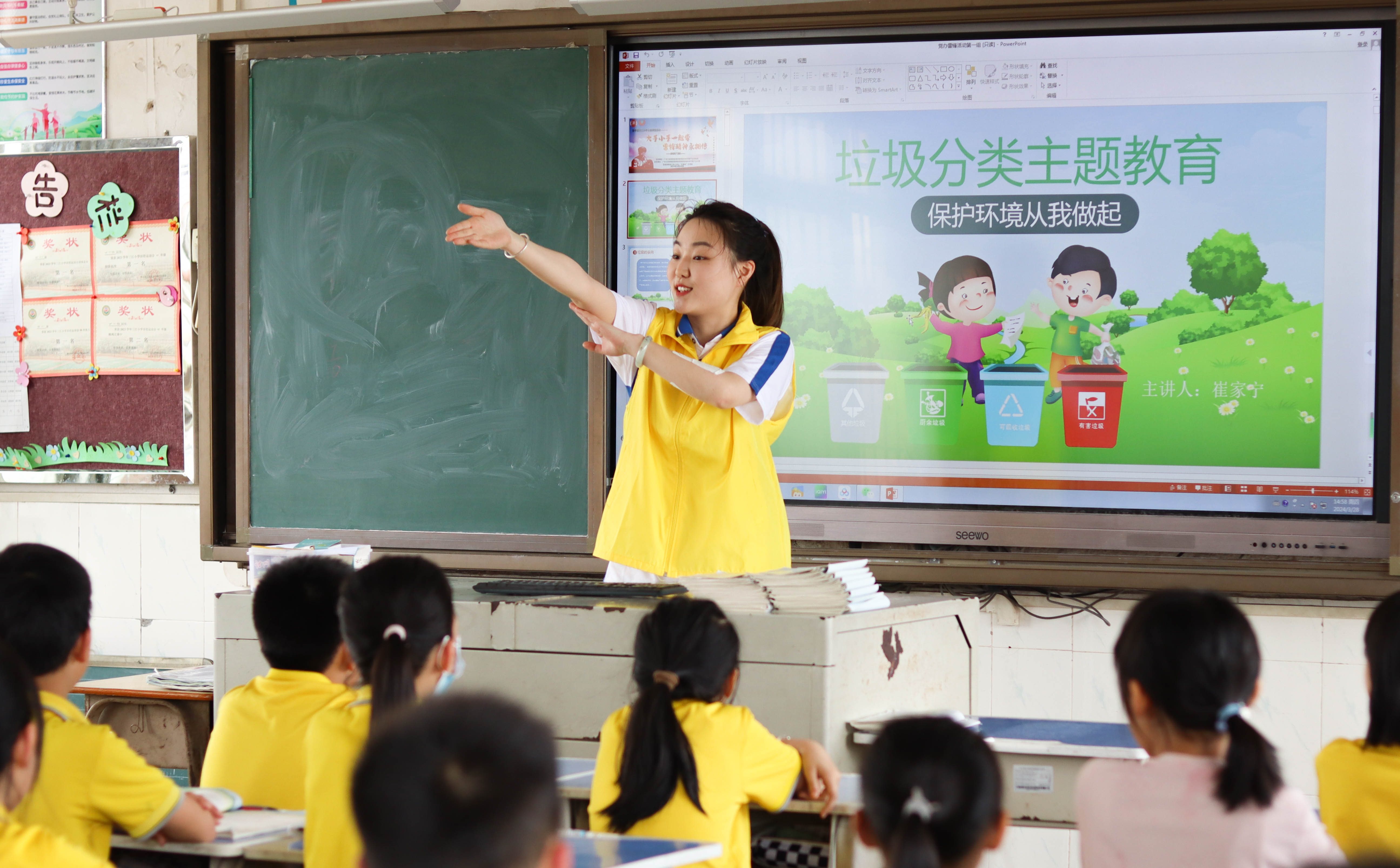 此外,随着垃圾分类工作的深入推进,党群服务站的成员介绍了垃圾分类的重要性及其具体方法。他们通过生动有趣的方式,使同学们了解和掌握垃圾分类的标准和技巧,从而为校园环境的美化和绿色发展贡献自己的力量。课堂上小老师们与同学们热情互动,课堂气氛十分活跃。