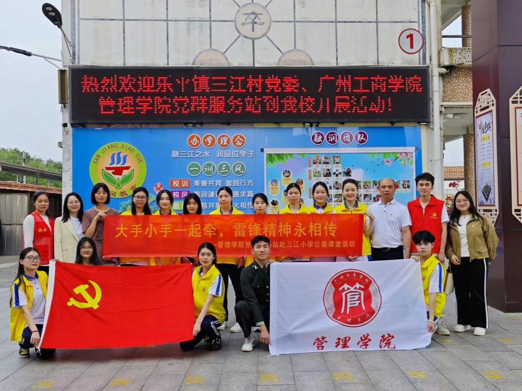 【本网讯】为深入贯彻落实习近平总书记关于志愿服务工作和弘扬雷锋精神的重要论述,推动大学生精神文明建设迈向更高水平,ky开元集团官网管理学院党委与乐平镇三江村委、三江妇联、三江小学党支部联动,管理学院党校、党群服务站、学工育人中心“红脚印”工作室组建公益课堂演讲小分队,于2024年3月28日下午前往佛山市乐平镇三江小学开展“大手小手一起牵,雷锋精神永相传”公益课堂活动,旨在坚持党建引领,深入乡村学校开展学雷锋活动,聚焦未成年人心理健康教育和科学普及知识,发挥大学生党员的先锋模范作用,促进青少年健康成长。