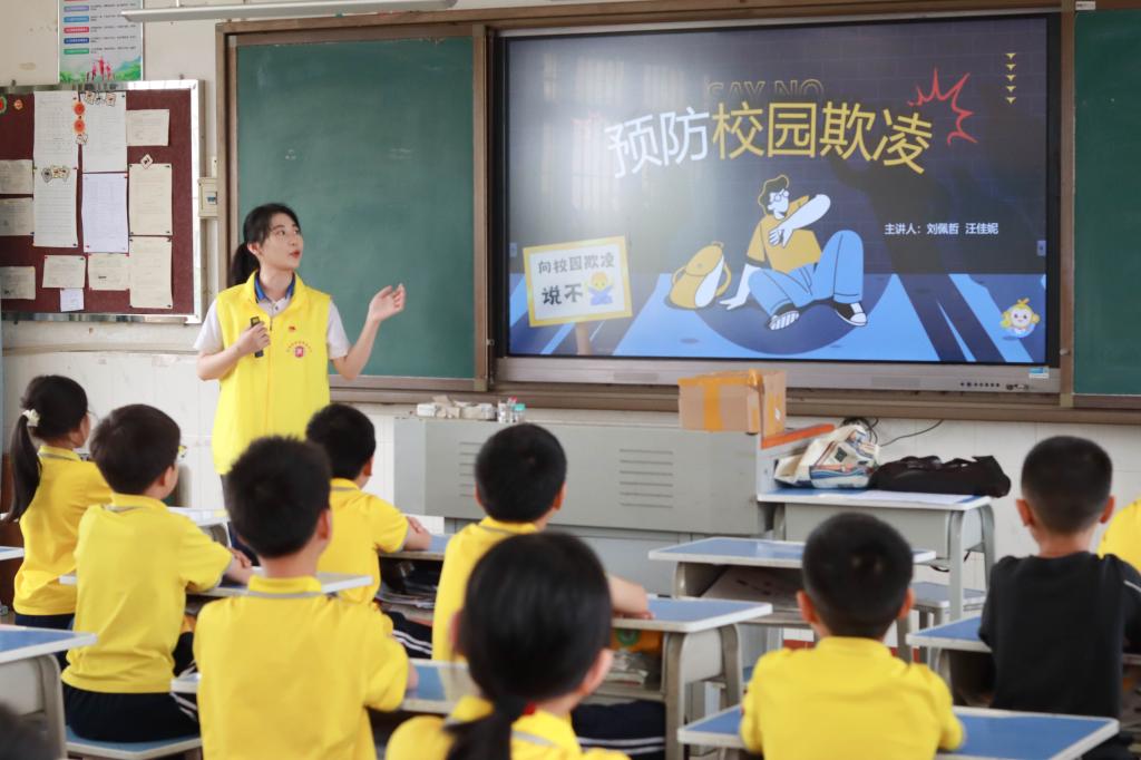 同时,针对近来校园霸凌事件频发的现象,公益课堂的第二个主题为向同学们普及如何辨别和应对校园霸凌的知识。他们通过视频教学、现场提问等方式使同学们深入了解什么是校园欺凌,帮助青少年的他们提高自我保护意识,增强在面对欺凌行为时的警觉性和应对能力,塑造健康人格,促进构建和谐友爱美好的校园环境。