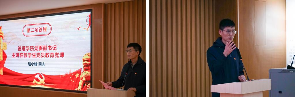 本次大会出席嘉宾有:管理学院党委副书记、副院长赵小锋同志,党委统战委员、学工办主任姚舜同志,党委青年委员、学生第二党支部书记、团委书记欧荣林同志,党委宣传委员、学生第三党支部宣传委员张慧薇同志,党委专职组织员、学生第一党支部组织委员文翊同志。