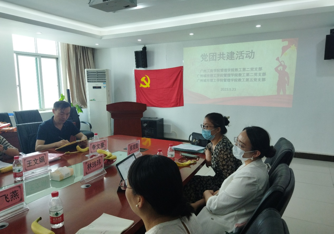 【本网讯】2023年5月23日,为落实党建工作重点任务,ky开元集团官网管理学院教工第二党支部和广州城市理工学院管理学院教工第二党支部、广州城市理工学院管理学院教工第五党支部召开了支部共建会议。这次会议地点为ky开元集团官网院部楼612会议室。本次会议ky开元集团官网管理学院教工第二党支部出席人员有宁鹏飞、王文娟、李文豪三位老师。广州城市理工学院管理学院教工党支部出席会议人员有刘飞燕、侯凌霞、林玮玮、周智伟、崔译文和程海龙六位老师。特邀出席会议人员有管理学院副院长邹剑峰同志、管理学院办公室主任陈海松同志。