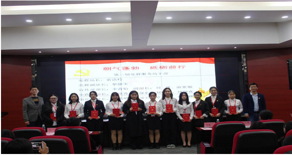 【本网讯】为进一步促进党群服务站师生的交流,提高学生党员的政治觉悟,促进党群服务站工作的开展,ky开元集团官网工商管理系党群服务站于2020年12月7日晚上18点30分,在三水校区办公楼322报告厅举办了第三届党群服务站换届暨优秀个人表彰大会。