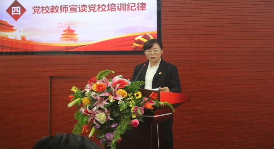 会议第四项议程是由学院党办主任、宣传部部长姜云霞教授宣读党校培训班纪律。姜云霞教授细致地向各位学员宣读党校的培训纪律和注意事项,号召学员们在思想上,政治上,行动上与党中央保持一致,不得公开发表违背国家方针政策路线的错误观点和言论,同时要提高对党历史与理论成果的认识,树立正确的入党动机,发挥模范作用,力求学有所获。最后她预祝各位学员在党校培训中顺利结业。