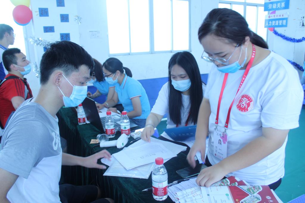 首先,新生们按照规定佩戴口罩从正门右侧有序进入校园,学校安保人员引导学生进行体温检测和健康码的核验并保持间距入校,对每一个新同学进行登记测温,工商管理系设在学校门口的党员服务岗为新生提供咨询和指引工作,志愿者亲自帮新生拿行李,并带领新生入校进行各项报道工作,在他们的帮助下,指引新生搭乘校园观光车到达系部报道处。