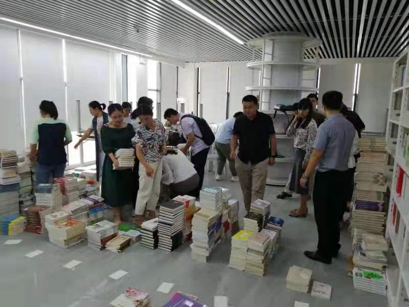 下午16:00,教师党员们在图书馆韩骐键老师的指导下,由党总支书记梁春树同志带领大家开始着手整理核对图书,并帮忙上架。党员同志分为两批,一批整理一楼的报刊阅览室,一批整理三楼的书库,大家有条不紊地进行着,时间一分一秒地过去,堆积如山的图书也渐渐变少,到晚上18:00左右,图书整理工作基本完成。
