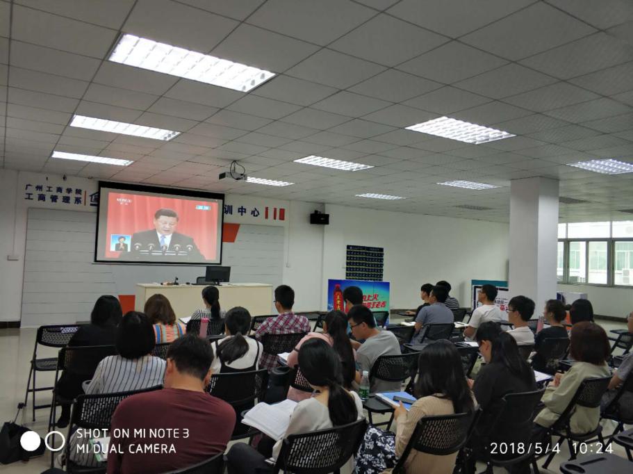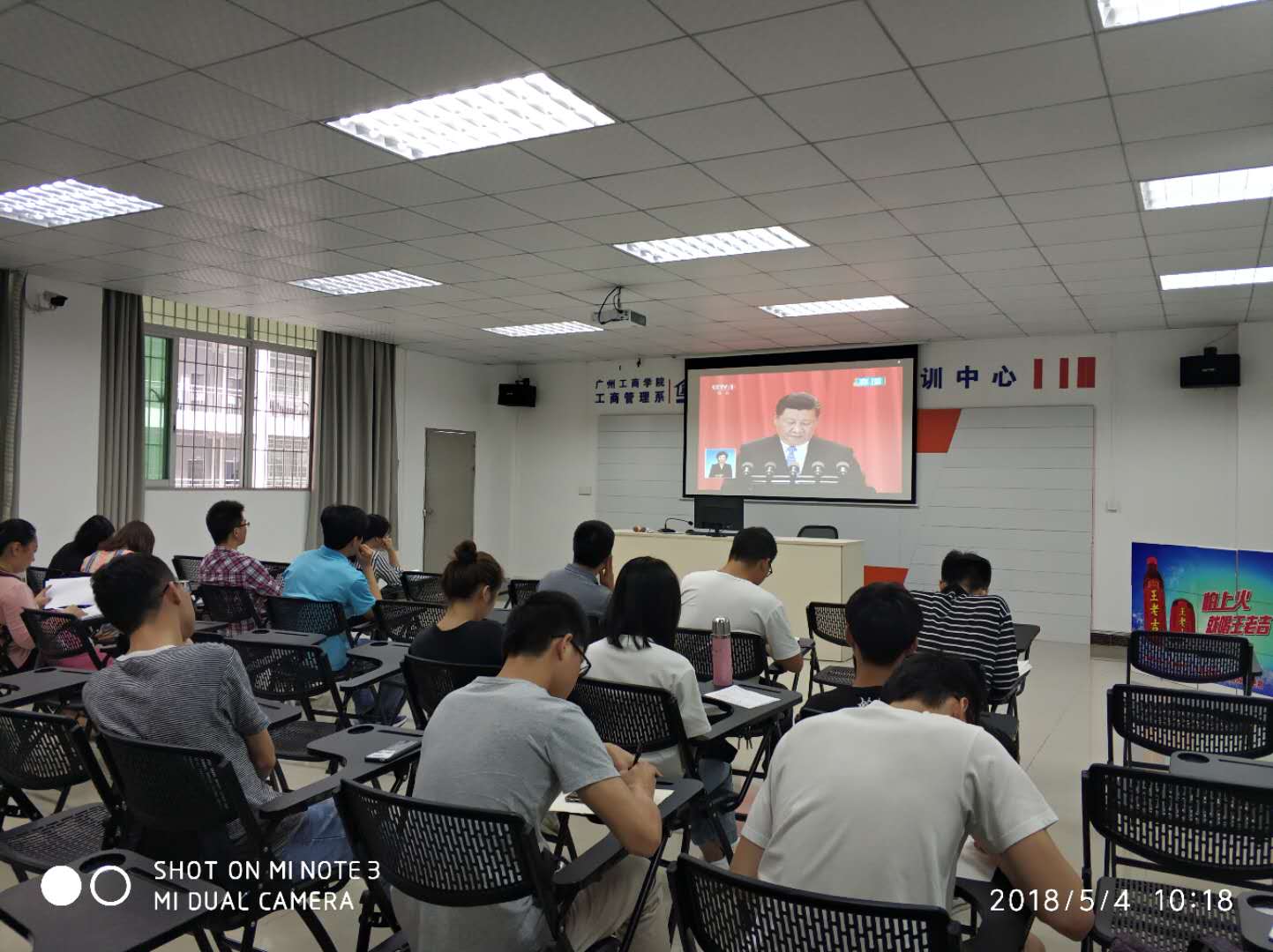 【本网讯】5月4日上午,纪念马克思诞辰200周年大会在北京人民大会堂举行。我系党总支组织师生党员代表在我院三水校区第二实验楼A302观看纪念大会直播,认真学习习近平总书记在大会上讲话精神。