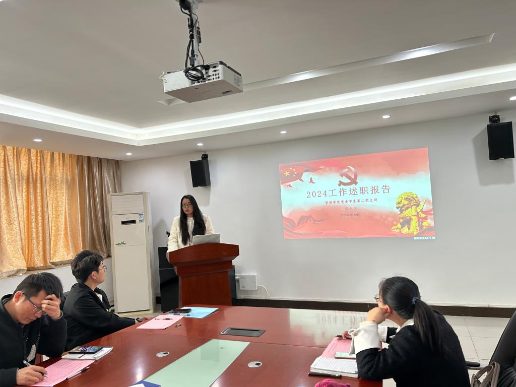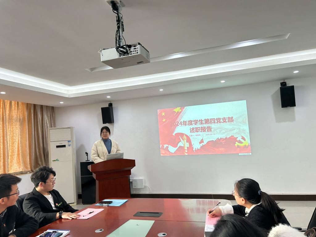 学生第四党支部书记陈姊祎同志简要汇报了支部党建工作的开展情况,支部通过组织党课、生活会等活动,提升了党员的党性修养与思想政治觉悟;学风建设方面,积极开展学习小组、经验分享会;支部成员广泛参与志愿服务、支教等社会实践活动;注重培养新党员,党员发展严格按照程序进行,确保工作规范化。学生第四党支部将在明年丰富活动内容,强化思想政治引领,完善沟通机制,明确工作定位,进一步提升支部凝聚力,持续为党和人民事业作出贡献。