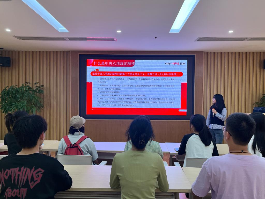 会上,谢丽星书记结合具体案例,对中央八项规定精神的核心要义进行了深入解读。她指出,八项规定不仅是改进工作作风的“铁规矩”,更是密切党群关系的“连心桥”,全体党员必须坚决反对“四风”问题,警惕形式主义、官僚主义的表现,杜绝享乐主义和奢靡之风的苗头。谢书记特别强调,要对照《中国共产党纪律处分条例》中列出的违规情形,如违规收送礼金、公款吃喝、公车私用、超标准接待等行为,严格自查自纠,做到知敬畏、存戒惧、守底线。她表示,支部将通过“三会一课”常态化学习、警示教育专题片观摩等形式,推动中央八项规定精神入脑入心,并要求全体党员以知促行、以行践知,将廉洁自律贯穿始终。