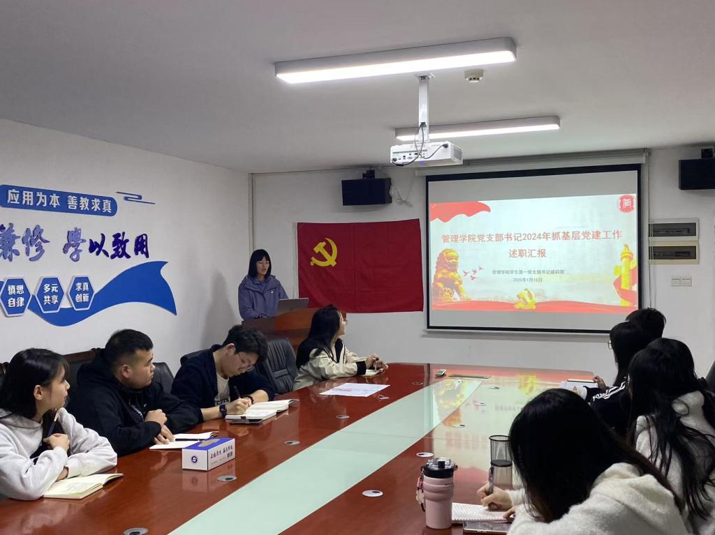 随后,开展组织生活会第一项内容,由党支部书记戚莉霞同志代表支委会向全体党员同志进行述职,她指出过去一年管理学院学生第一党支部在思想政治和党纪学习教育、强化支部组织功能、提高发展党员质量等方面扎实稳步推进,获得了学院党委的认可。未来支部将以“党建+学工”为工作重点,充分发挥党支部在学生工作中的思想引领作用和组织职能,为学院和学校的安全稳定与和谐发展做出应有的贡献。