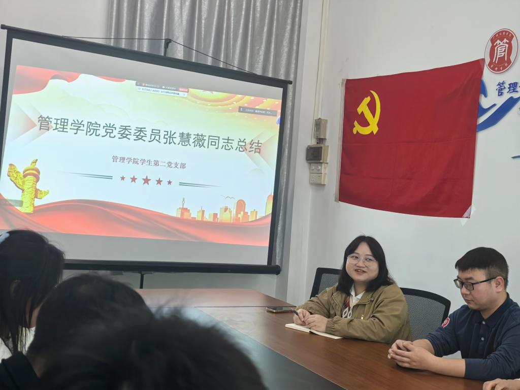 会议最后,管理学院党委宣传委员张慧薇同志对本次组织生活会进行了总结。她强调,党支部活动不仅要‘做实’,更要‘做亮’,需通过品牌化建设形成示范效应,让党建成果可感、可触、可传播。