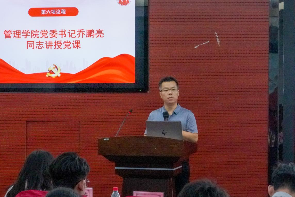 最后,由管理学院党委书记、党校校长乔鹏亮同志为大家讲授党课。乔鹏亮同志结合自身丰富的工作经验与深刻思考,从祝贺学员顺利完成培训、强调学习后的行为规范、明确合格党员的标准等方面展开。他提到,党校学习只是阶段性的,而思想进步是终身的,学员们要将所学知识转化为实际行动,在工作、学习和生活中严格遵守党纪,发挥党员的先锋模范作用,为党和国家的事业贡献自己的力量。