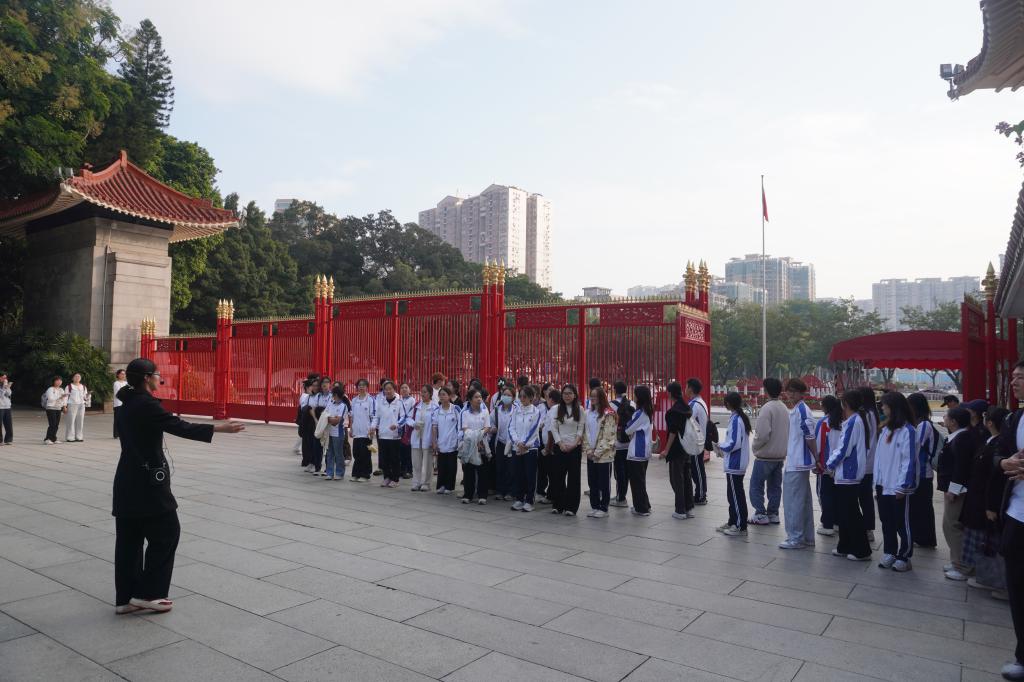 纪念馆内的泛黄书信、锈迹斑斑的枪械、珍贵的历史照片等文物史料,穿越时空至今熠熠生辉;园区内英勇烈士们的雕像身躯挺拔如松,胸膛微微挺起,仿佛仍在迎着风前行,生动再现了1927年12月11日那场震惊全国的武装起义。从张太雷、叶挺、叶剑英等革命先辈策划起义,到教导团与工人赤卫队并肩作战,再到起义失败后英烈们面对屠刀宁死不屈的壮举,一段段悲壮的历史让同学们热泪盈眶。