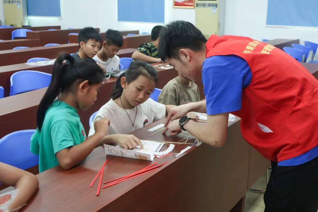 课堂上,小朋友们在小老师的带领下,学习了传统礼仪,如揖礼、拱手礼等,感受了古代与现代礼仪的差异;在非遗竹编课堂上,两两一组共同编织风铃,领略了非遗文化的独特魅力。在二十四节气课堂上,小朋友们不仅了解了节气的内涵,还亲手绘制了二十四节气文化墙,加深了对传统文化的认识。夏令营还聚焦非遗探索,带领小朋友们学习了漆扇工艺和植物喷绘。在专业老师的指导下,他们亲手制作了色彩斑斓的漆扇,体验了传统工艺与现代设计的完美融合。植物喷绘则让小朋友们利用自然材料发挥创意,制作出个性化的扇子,既提升了环保意识,又锻炼了观察与动手能力。此外,诗词朗诵、传统歌曲学习及手语操培训三门兴趣课堂,也让小朋友们领略了诗词之美、民族音乐的魅力及无声交流的艺术。为加深文化深度学习,突击队的小老师们还组织小朋友们学习了甲骨文的起源与发展、香囊制作、龙舟精神等文化知识等。接源村第一书记胡嘉杨同志也为小朋友们带来了治水知识科普讲座,开启了环保知识的新篇章,强调了河流污水治理对维护水乡生态景观和人文环境的重要性。