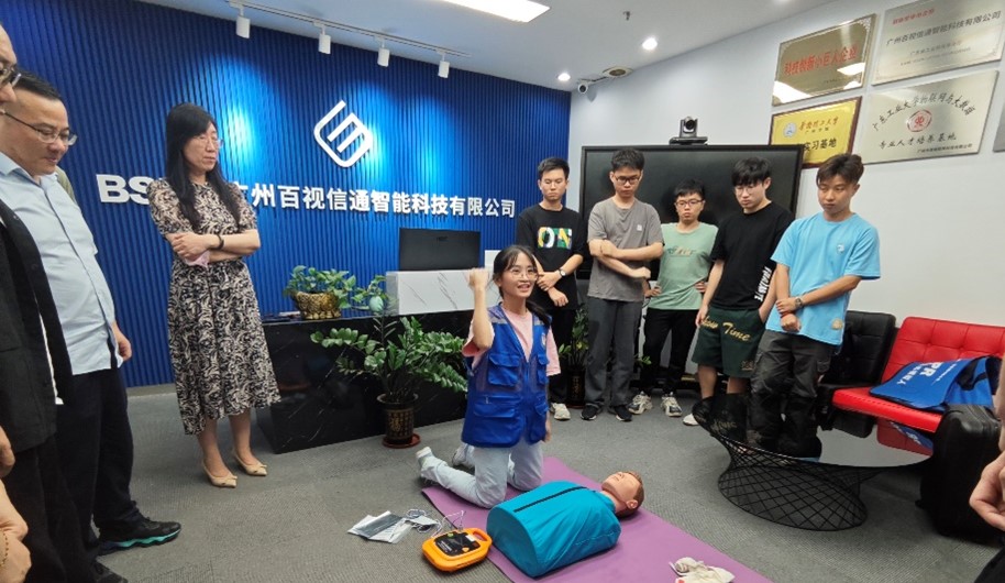 工商管理专业学生在教师带领下,有幸在广州百视信通智能科技有限公司进行了一次重要的“益民救护培训”实践活动。这一跨领域的实践活动,展现了工商管理专业学生们的创新思维和实际操作能力,同时也体现了他们的社会责任感。通过这样的实践,学生们不仅提升了自己的专业技能和解决问题的能力,还为企业文化的建设和员工的福祉做出了积极贡献。