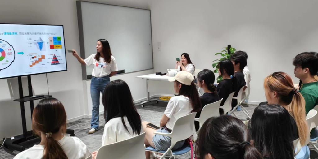 职业分享环节,蔚来佛山HRBP鄢露女士向同学们分享了自己的从业经历以及对人力资源管理岗位最新发展趋势的观察和思考。人力资源管理专业学生的职业生涯发展较为清晰明确,但也面临其他跨专业同学的竞争。因此,需要各位同学在校期间认真学习专业知识,无论是六大模块还是三支柱模型等等专业知识,都需要在座同学们认真学习,为将来的工作奠定坚实基础。