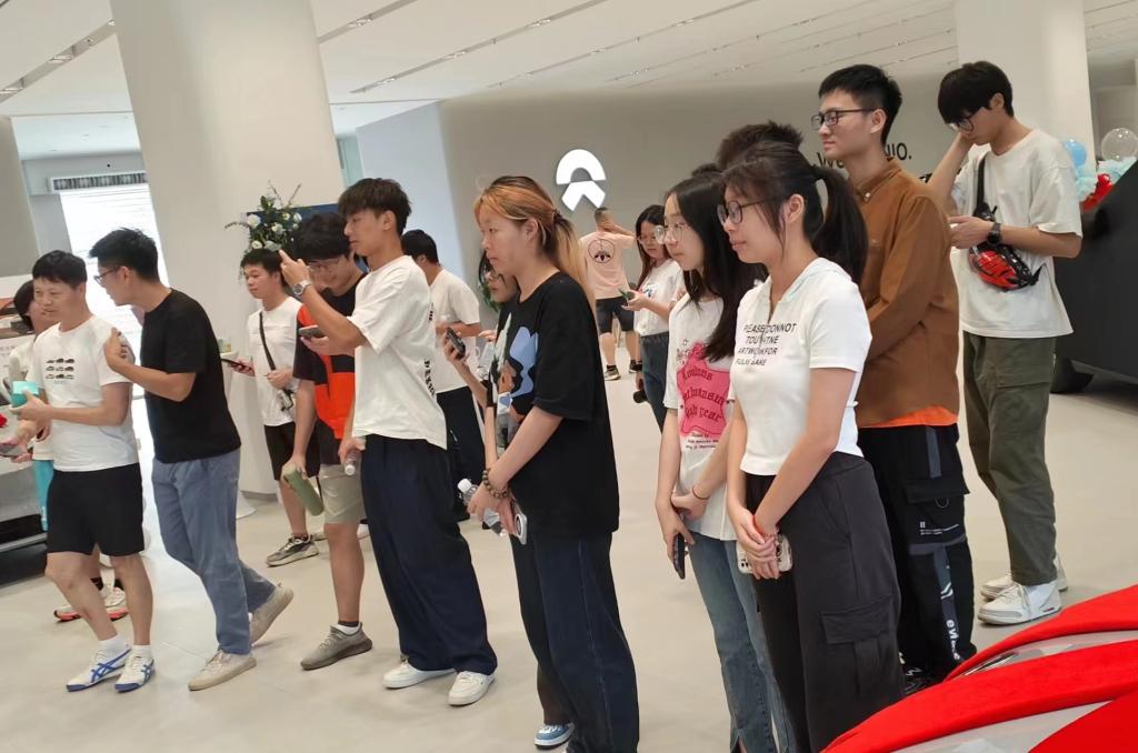 自由参观环节,蔚来佛山的人力资源管理专员Peggy带领师生一行参观了蔚来佛山销售有限公司的行政办公区域,并现场观摩了佛山地区第10000辆蔚来汽车的交付仪式。蔚来致力于通过提供高性能的智能电动汽车与极致用户体验,为用户创造愉悦的生活方式的理念让大家大受启发,也对市场竞争中努力营造差异化优势的策略有了更加直观的体验。