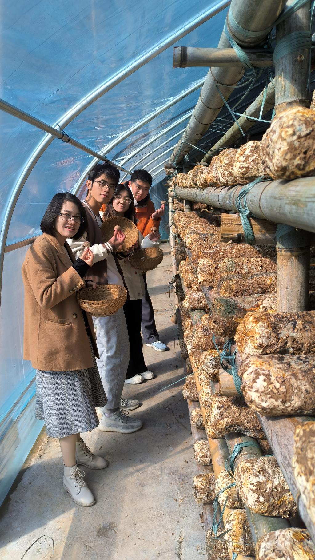 在企业的参观过程中,最让同学们印象深刻的环节之一便是对香菇生产基地的参观。陈总带领大家前往位于青竹公司一隅的香菇生产基地,介绍了基地的基本情况及生产流程。青竹公司在选择香菇品种上,经过多年的摸索,最终决定采用短柄香菇作为主要产品。短柄香菇不仅个头适中,而且在口感上极为Q弹,肉质紧实爽滑,香味浓郁,深受市场欢迎。与传统长柄香菇相比,短柄香菇在营养价值和口感上的优势,令它成为消费者的首选。
