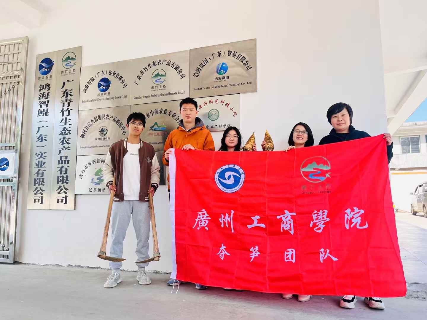 随着夕阳的余晖洒落在清远的大地上,师生们结束了当天的行程,大家在青竹公司大门前合影留念,记录下这一难忘的时刻。此次参观不仅让同学们深刻感受到农业产业发展的潜力,也让大家意识到,只有创新与奋斗,才能在激烈的市场竞争中立足,并最终实现个人与社会的共同发展。