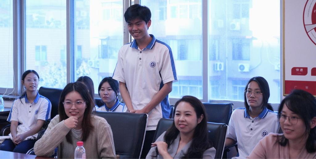 在交流环节,黄学斌博士和学生代表陈鸿辉同学积极提问,徐新明书记则针对他们的问题进行了详细、真诚的回答,现场气氛热烈而融洽。