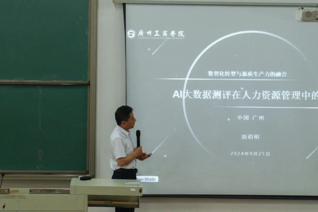 【本网讯】2024年9月25日,管理学院人力资源教研室组织开展了一场极具前瞻性和启发性的校外专家讲座,本次讲座的主题为“AI大数据测评在人力资源管理中的应用:数智化转型与新质生产力的融合”。活动现场吸引了众多师生的热情参与,此次讲座为大家带来了前沿的知识和深刻的思考。