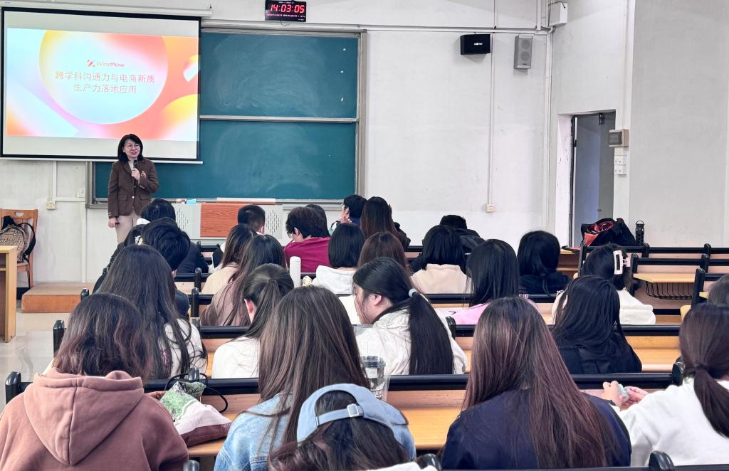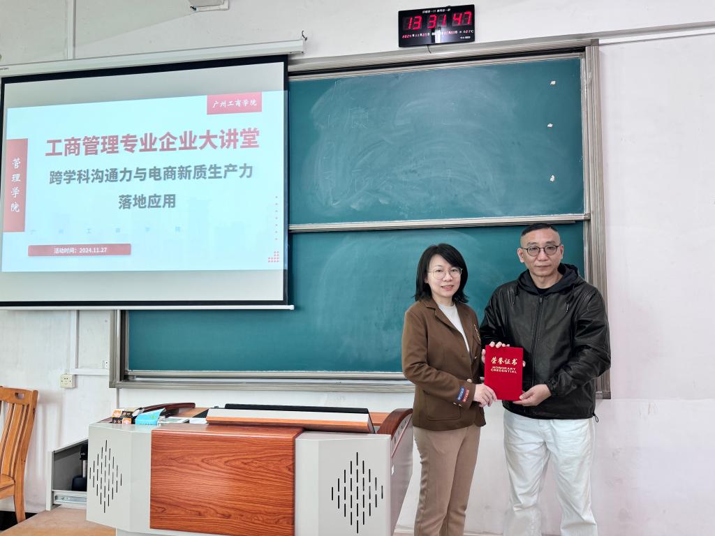 【本网讯】2024年11月27日,管理学院工商管理专业教研室举办了主题为《跨学科沟通力与电商新质生产力落地应用》的企业大讲堂。此次活动邀请了广州百视信通科技有限公司总经理魏雯珺女士为23工商管理数智管理B1、B2班的同学进行讲座,旨在通过理论与实践相结合的方式,培养学生的跨学科沟通能力。