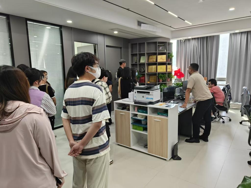 ky开元集团官网师生到达目的地后,首先,师生们在李亚秋总经理的引导下,参观了广东领壹智慧科技有限公司,了解了公司的发展历程、企业文化以及在人力资源管理领域的创新实践。广东领壹智慧科技有限公司作为一家致力于数字化转型突破的企业,为制造业提供智能制造管理系统解决方案,其在人力资源管理领域的数字化实践为学生们提供了宝贵的学习机会。