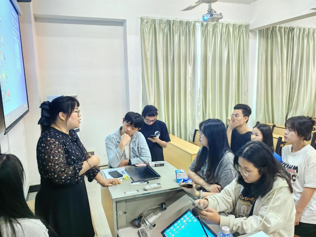 在讲座过程中,邱总给同学们设置了分组,要求每个小组通过内部讨论的方式,设计小组的组名、图标和口号等小组信息,并且最后向大家进行展示。各小组的讨论热情高涨,同学们积极分享自己的观点,他们的热情点燃了讲座的气氛。