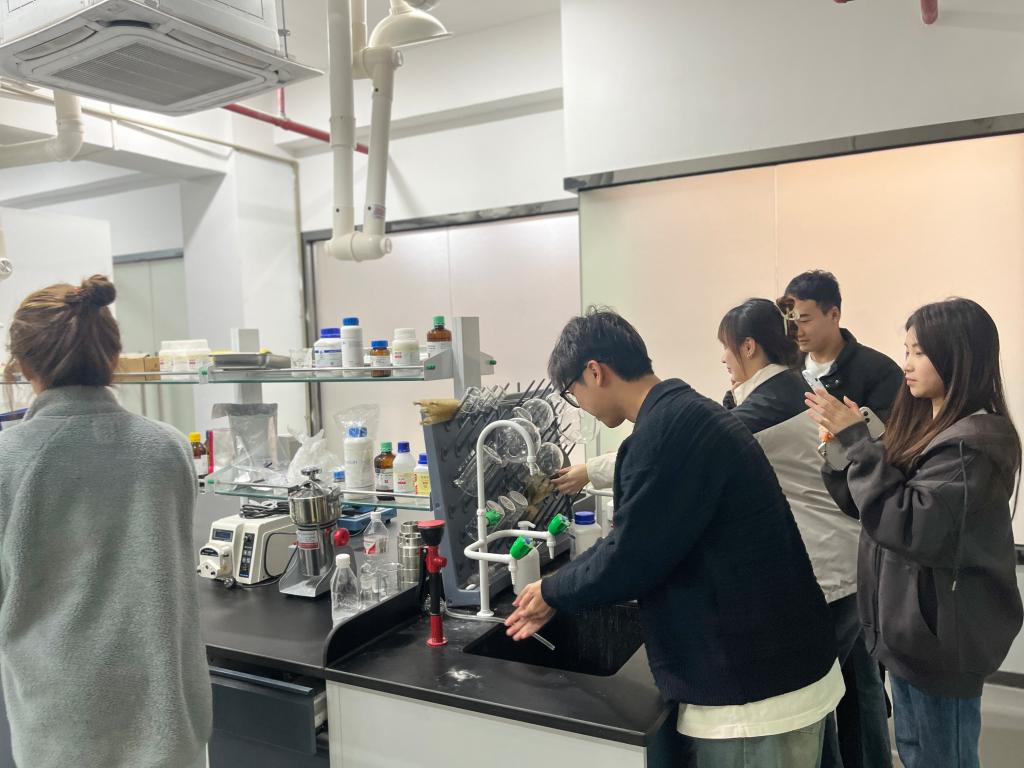 随后,同学们步入企业的核心区域——实验室。作为广东省高校成果转化中心重点引进项目,广东汉生新材料有限公司拥有的实验设备、前沿的科研项目令大家目不暇接。从生物质降解新材料的研发过程到各类产品的实验测试,学生们近距离接触到行业领先的技术与创新实践,深刻领悟到科技创新在企业发展中的关键作用,极大地激发了他们对专业知识的探索欲望。