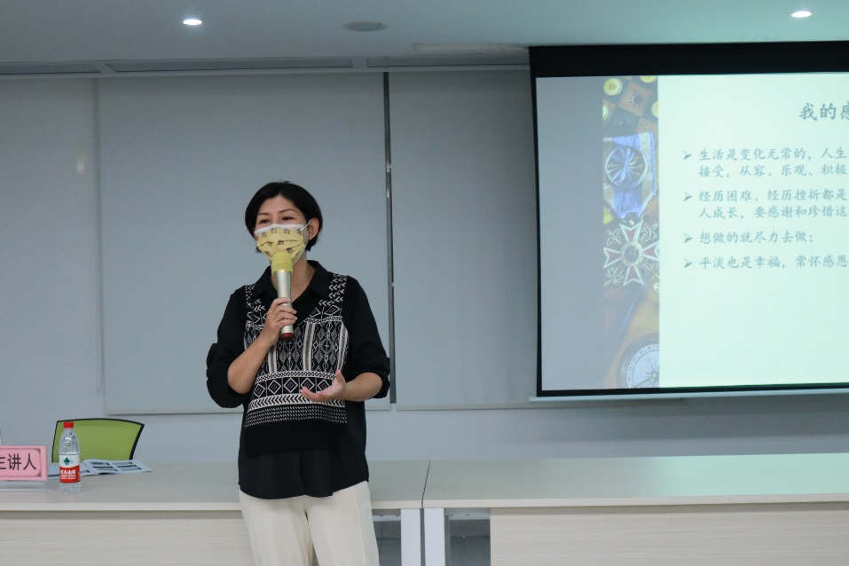 讲座最后,老师给我们分享了她读这本书的感悟。尽管主人公福贵的一生都不顺遂,但是他从不怨天尤人。相反,他还积极地去寻找解决的办法,始终对生活抱有热情。所以当我们面对困难挫折时,也应该从容、积极、乐观地去面对,始终相信我们会战胜它,取得成功。