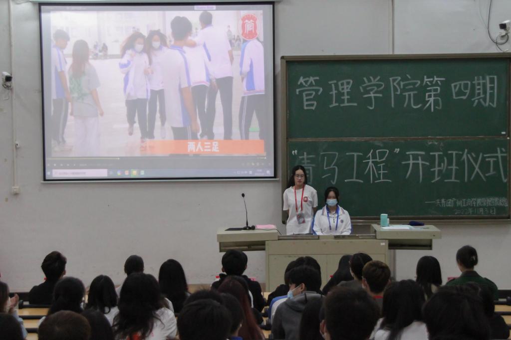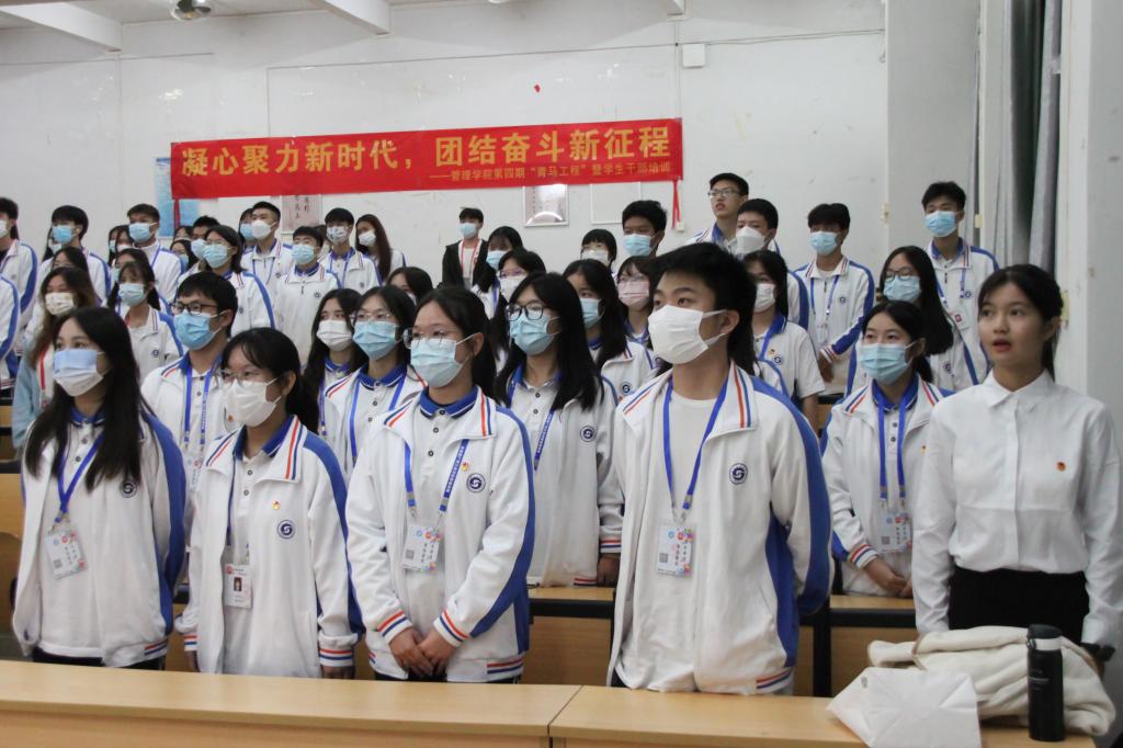 【本网讯】为贯彻党的二十大精神,加强学生骨干思想建设,更好地以习近平新时代中国特色社会主义思想武装青年,使大学生充分学习和掌握党的理论创新成果,早日成长为中国特色社会主义事业的合格建设者和可靠接班人。管理学院于2022年11月3日晚19:00在第一教学楼C207召开2022年管理学院第四期“青马工程”开班仪式。
