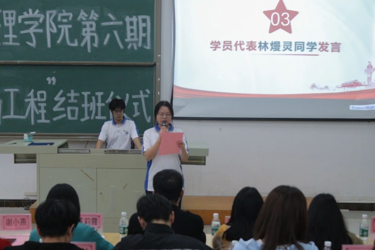 林熳灵同学表示,此次“青马工程”让她明白新时代青年应勇担时代重任,争当一名优秀的青年马克思主义者。她认为,作为新时代的先进青年、大学生,要努力学习与贯彻党的基本路线与方针政策,提高自身思想觉悟,增强自身的责任感与使命感;要不断增强自己的科学文化素养与思想道德修养,不断提高自我政治理论修养,努力争取在建设中国特色社会主义过程中建功立业,在中国梦的实现中贡献出自己的一份力量。最后她向所有青马学员号召:一起携手努力,为实现中华民族伟大复兴的中国梦凝心助力,勇往直前。