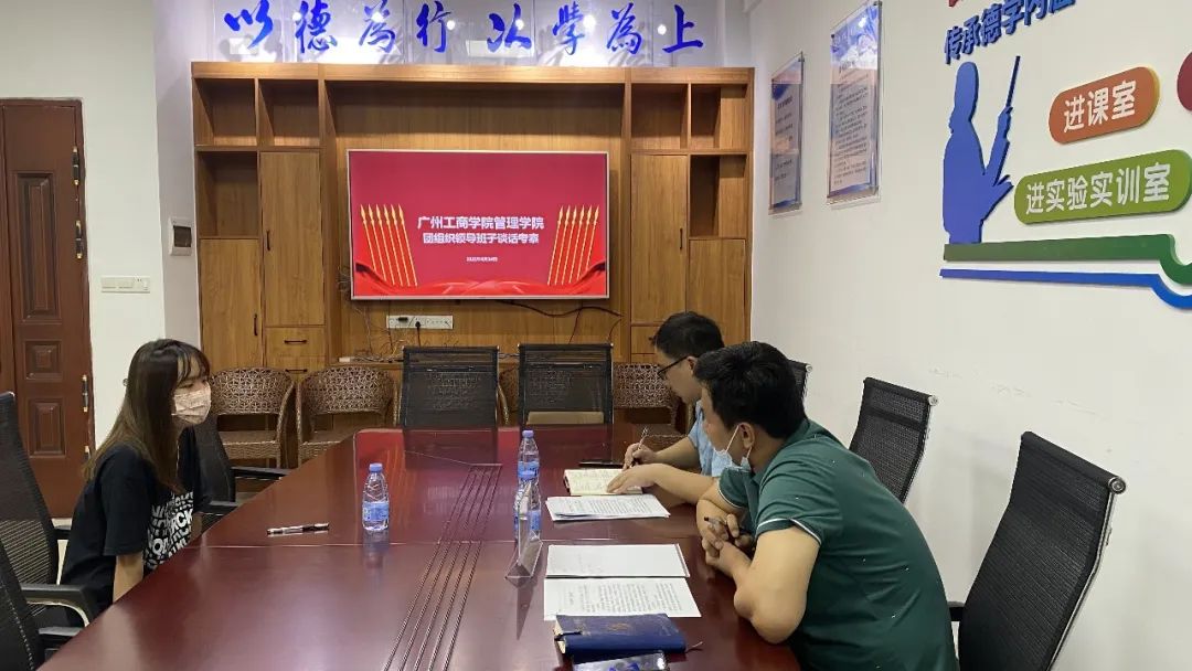 【本网讯】ky开元集团官网校团委代表于2022年6月14日上午9:00-11:30,在一教D203辅导员工作室召开ky开元集团官网管理学院团组织领导班子谈话考察,出席本次座谈会的谈话人为校团委洪卫烈书记、校团委曾广志副书记,此次座谈会由管理学院党总支青年委员余远远同志进行记录。