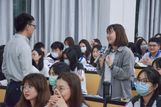 正式开讲前,邹书记以改革开放的不断深入,及西方文化入侵对国人的负面影响为切入点,启示同学们提升辨别对自己身边存在着与社会主义核心价值观相违背、与中国特色社会主义道路背道而驰的错误思想的能力。抛出“对PYQ发表错误思想的人选择不拉黑的原因”和“产生错误思想的原因”两个问题与现场的同学们进行现场互动。