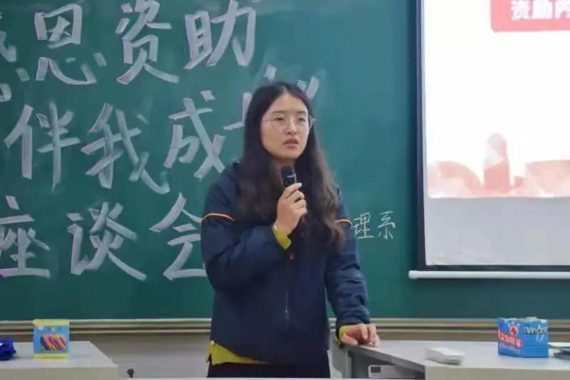 首先,余远远老师提到了国家资助政策一般是指国家学生资助政策体系,在普通高校建立了以国家奖助学金、国家助学贷款、学费补偿贷款代偿、勤工助学、校内奖助学金、困难补助、伙食补贴、学费减免等多种方式并举的资助政策体系,同时实施家庭经济困难新生入学“绿色通道”。随后讲到关于国家资助的意义,老师在座谈会中指出,虽然金额不等,但在物质上能够减轻一定的经济负担,同时我们应该认识到对国家和社会来说,每个人都不是单独的个体,我们是居于社会的一个命运共同体状态之中,只有我们自身强大,有理想有目标,是励精图治的当代青年大学生,才得使国家富强。