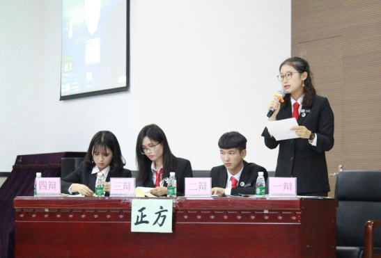 本次总决赛争夺冠军的两支队伍分别是正方工商管理系与反方外语系。正方工商管理系的代表有一辩谢汶彤、二辩叶绿洋、三辩伍嘉慧、四辩郑纯。比赛开始,正方双方围绕辩题:传统戏剧文化加入流行元素是对传统戏剧的传承/破坏展开辩论。首先,双方一辨用高度概括性地陈述为本场辩论开篇立论,继而,正反双方的二三辩手们凭借精辟的措辞、犀利的言辞,展开了短兵相接的攻辩环节,展现出咄咄逼人的气势,十分精彩。紧接着,在自由辩论环节,辩手们互不相让,情绪激昂,双方激烈又精彩的辩论使辩论气氛一直处于紧张的氛围,为观众带来一场美的享受。最后,进入总结陈词环节,双方四辩措辞缜密,谈吐流利,用概括性的陈词为比赛争取最后的胜利。