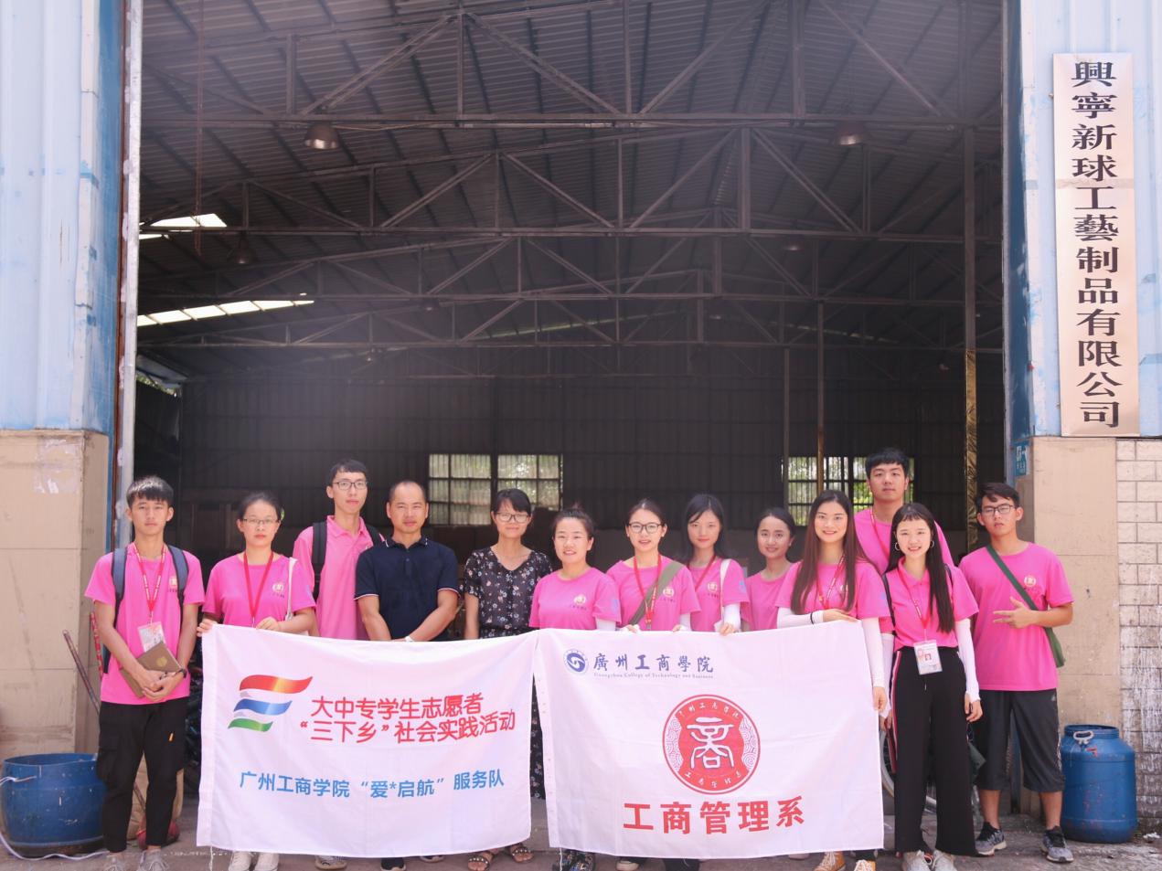 在经济层面上,成员对当地特产的生产运营情况开展调研,例如:针对当地娘酒产业发展情况展开调研,通过采访当地酒坊老板及工作人员,对梅州娘酒的经营、传承、推广模式等方面有了一定的了解。同时,“爱*启航”服务队走近“兴宁新球工艺制品有限公司”探访了当地支柱产业——手工业的发展情况,更深入的了解了当地改革开放四十年来经济的发展情况。