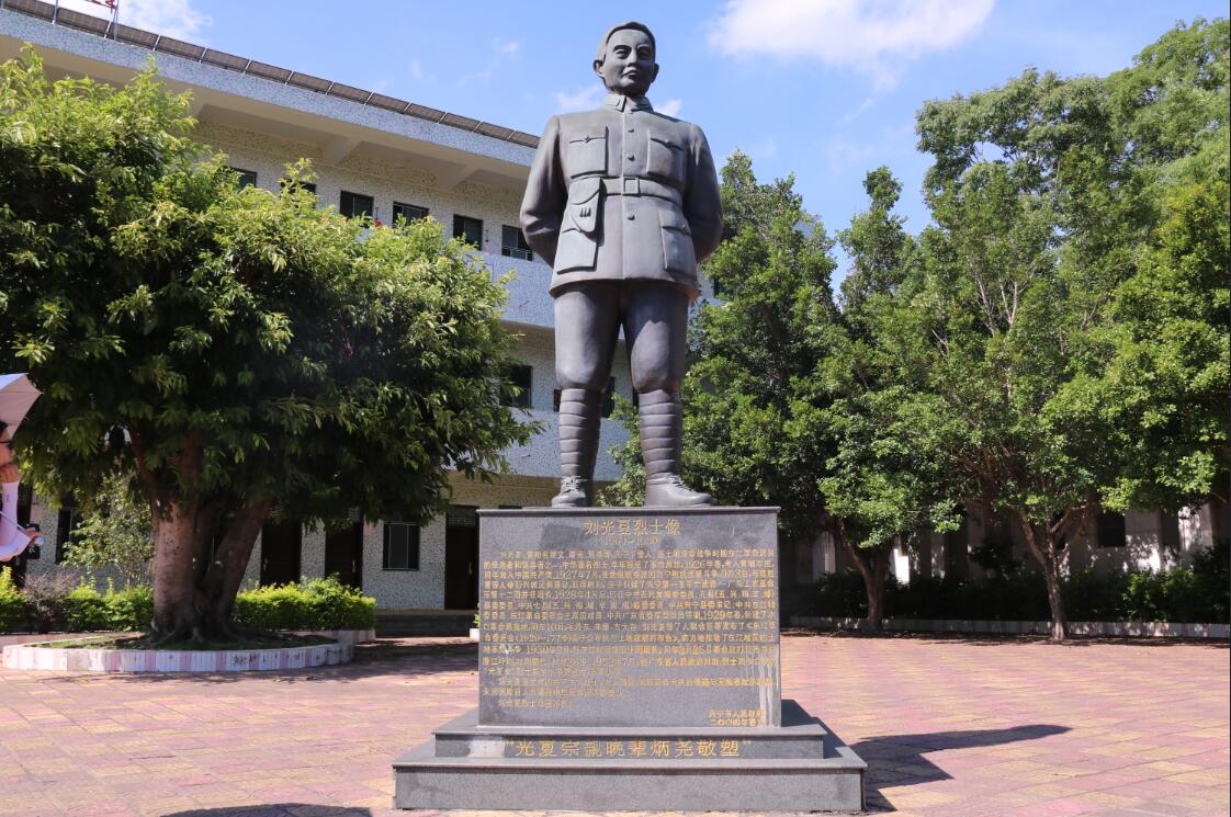 刘光夏烈士,广东兴宁人,生于1904年,出身于农民家庭。求学时期开始阅读马列著作和进步书刊,1926年,加入中国共产党。1927年“八一”南昌起义前夕,受党委派回兴宁发动组织农民开展武装斗争。9月2日,领导发动武装暴动并取得胜利,宣布成立“广东工农革命军第十二团”,并任团长,率领部队与敌作战,打击反动势力,创建了水口革命根据地。民国十九年(1930年)3月下旬,率部攻打反动武装据点澄江圩,战斗中壮烈牺牲,时年26岁。