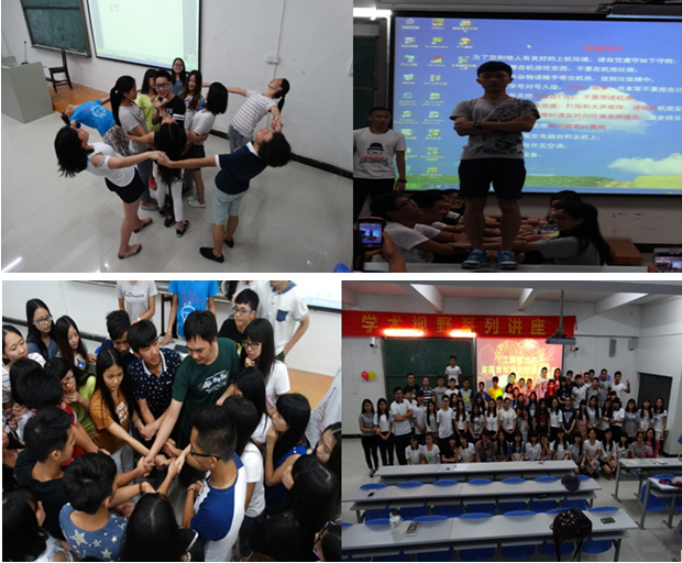 本次培训的要点有三方面:一、活力青春,思想蜕变,全面提高学生干部思想格局;二,励志青春,成长成才,全力提高学生干部的学习能力;三,发奋青春,志愿服务,大力促进青年干部进社会服务。在我系王伟江老师及督导组的指导下,全体学员进行了“心有灵犀”、“头脑风暴”、“奔跑吧少年”、“解手链”和“抱团信任”等项目活动,从各方面提高学员们的能力,如团队协作能力、应急策划能力、自我挑战能力等,让大家受益匪浅。全体学员被分成了六个,在游戏活动中相互竞争,相互学习,每完成一项活动后都进行个人心得体会的分享。学员们洋溢着青春与激情,在一个又一个集聚思考与挑战的活动中迎难而上,受到了更大的启发与洗礼。原本的竞赛变成了合作,在集体的共同努力下所有同学都成功的完成了一个接一个挑战项目,真切感受到了团结的力量,集体的智慧,也圆满地结束了这短暂而又意义非凡的素质拓展培训。