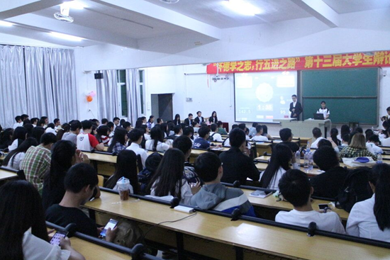 【本网讯】2015年11月19日晚上7点30分,以“怀德学之志,行五进之路”为主题的第十三届大学生辩论赛在三水校区第一教学楼C102继续进行。此次比赛邀请雷源、邱代东、白璐、高媛媛和骆思贤等5位老师担任评委。